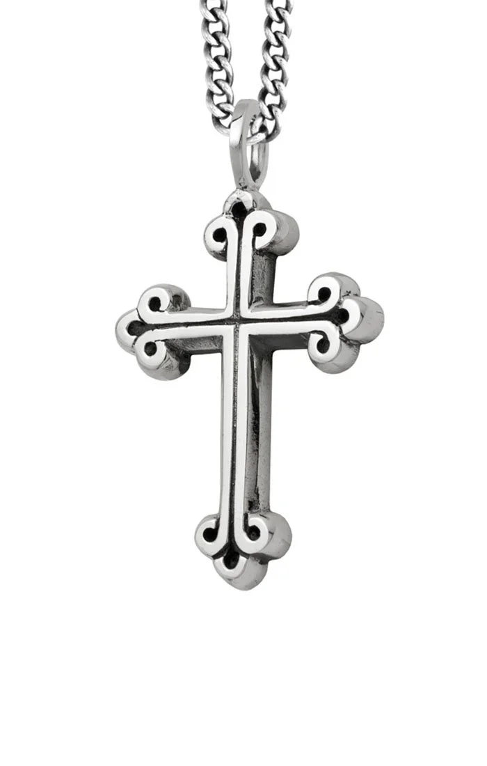 Forge your legacy with the sterling silver Traditional Cross Pendant. Crafted from solid .925 sterling silver, this bold piece embodies strength, style, and authenticity. Suspended from a 24'' sterling silver curb link chain and secured with a durable lobster clasp, it's designed for those who live with purpose. Handmade in the USA, this isn’t just jewelry—it’s a statement of who you are.